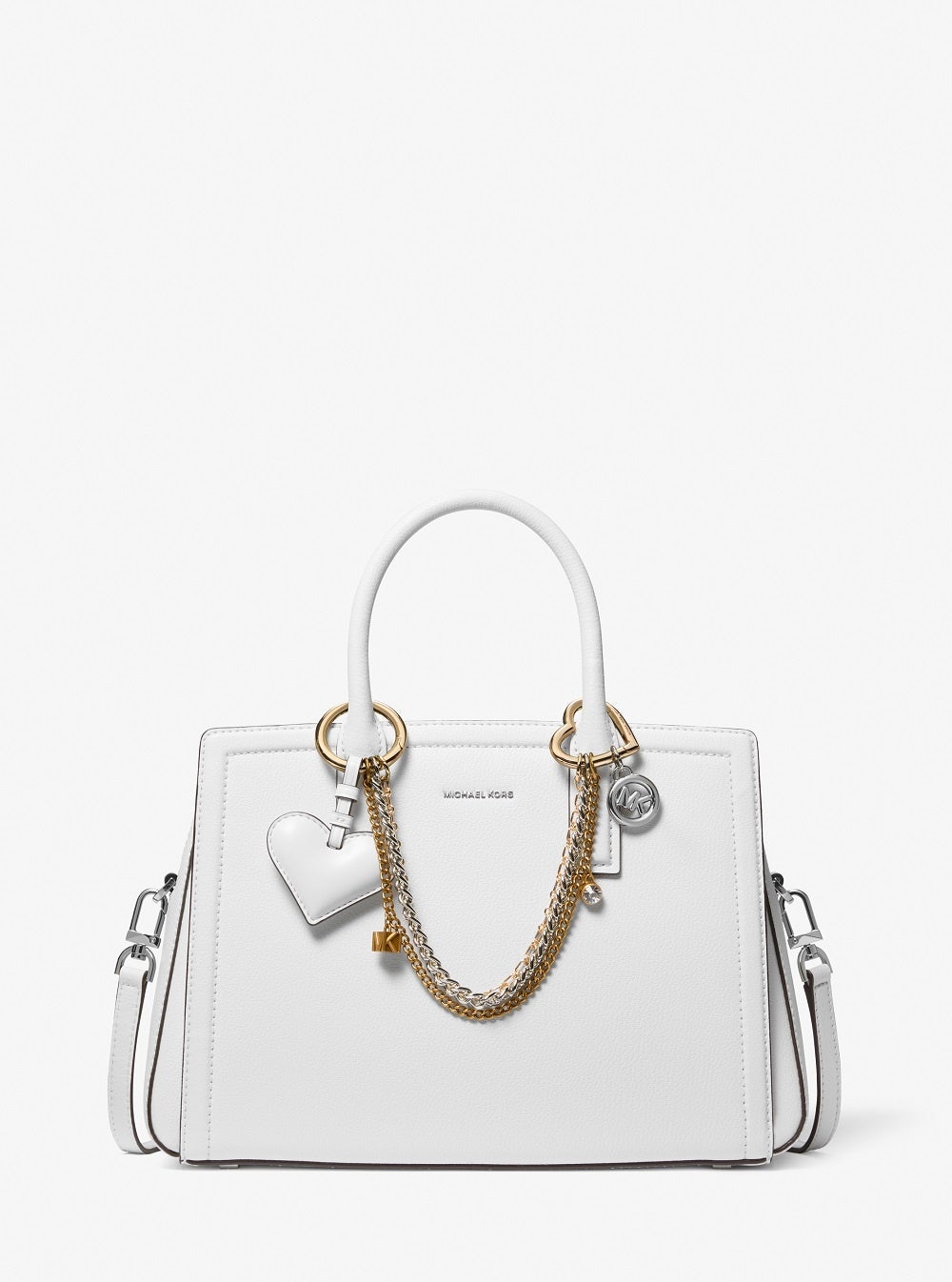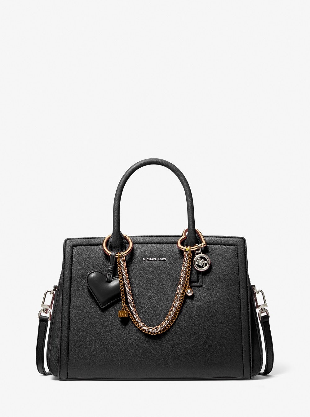 また、人気シリーズの「LAILA(レイラ)」は、レザーハートとミックスメタルの3連チェーンがあしらわれた華やかなチャームでアップデートしました。トップハンドルに取り付けられたこのチェーンチャームは取り外し可能で、気分に合わせて付け替えてムードを変えて持つこともできます。