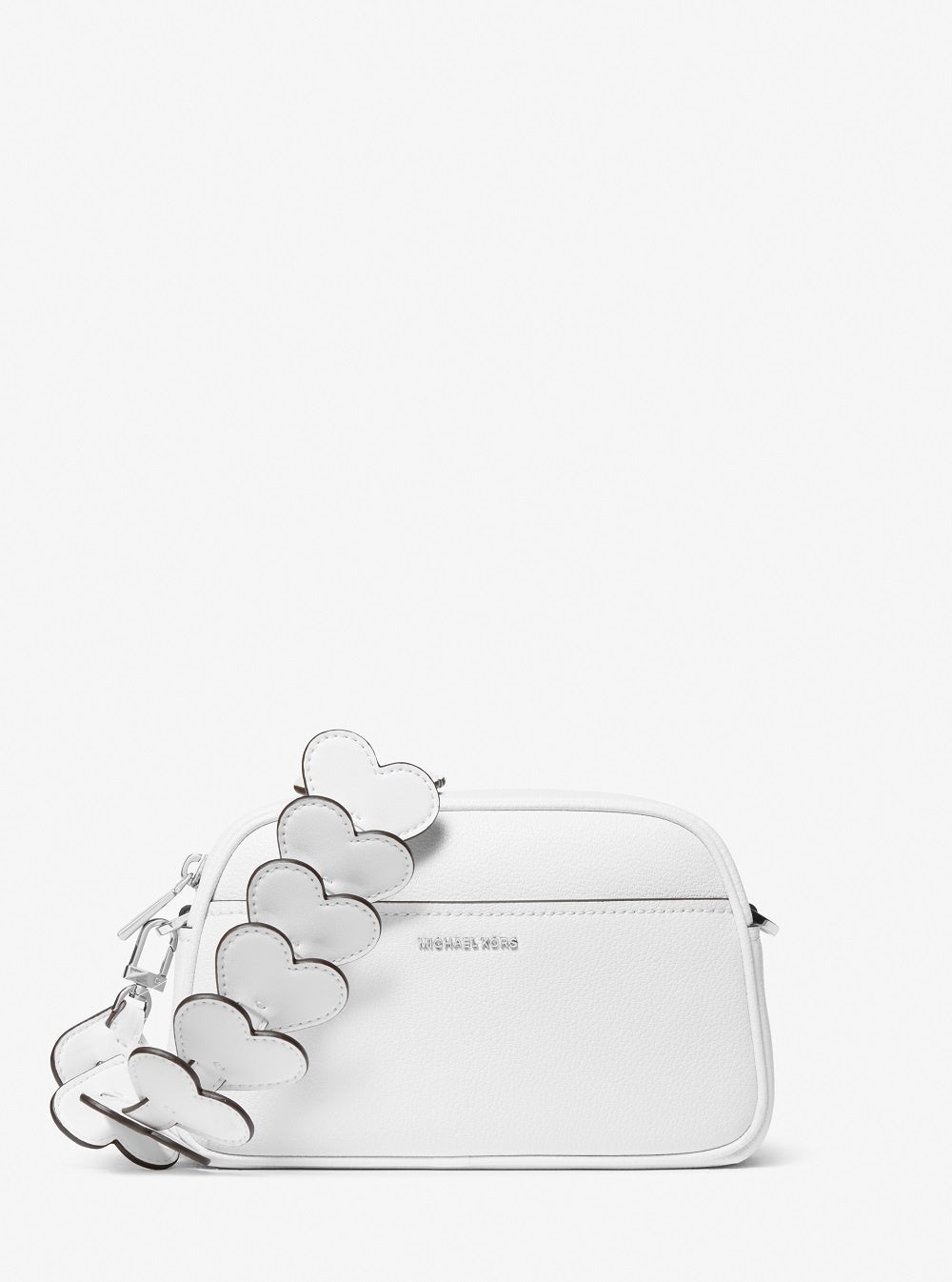 「JET SET(ジェットセット)」カメラバッグは、レザーハートをひとつひとつハンドクラフトで丁寧に連ねたクロスボディストラップで、ロマンティックな印象に仕上げました。