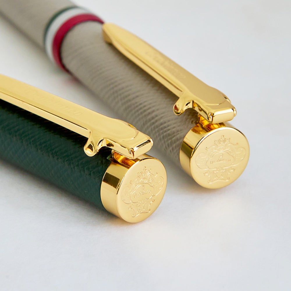 アニバーサリーアイテムにふさわしいゴールドトリムが華やかなボールペンです