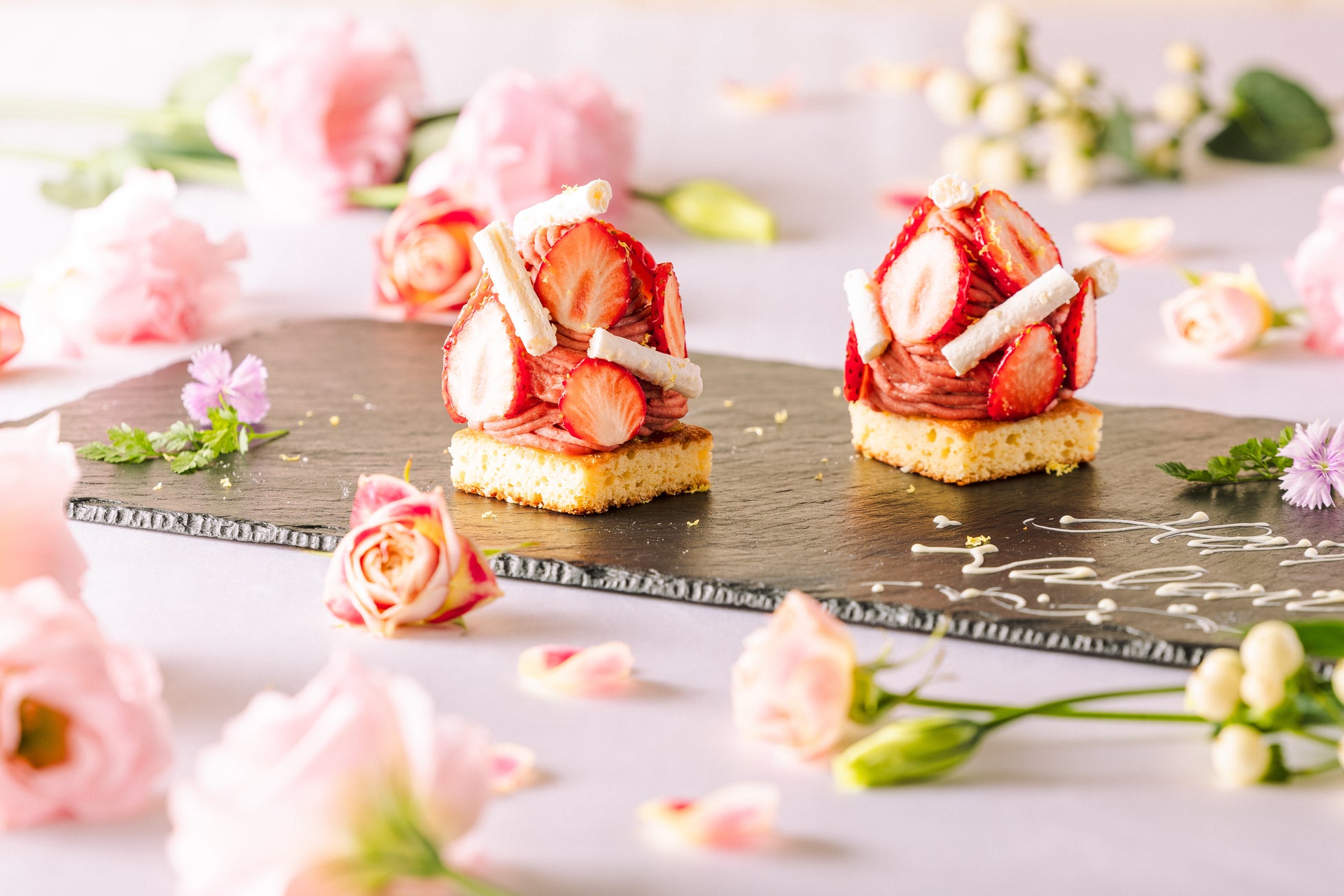デザートには、バレンタインを彩る「ストロベリーのモンブラン」をご用意。食後にはコーヒーまたは紅茶を添え、余韻までお楽しみいただけます。