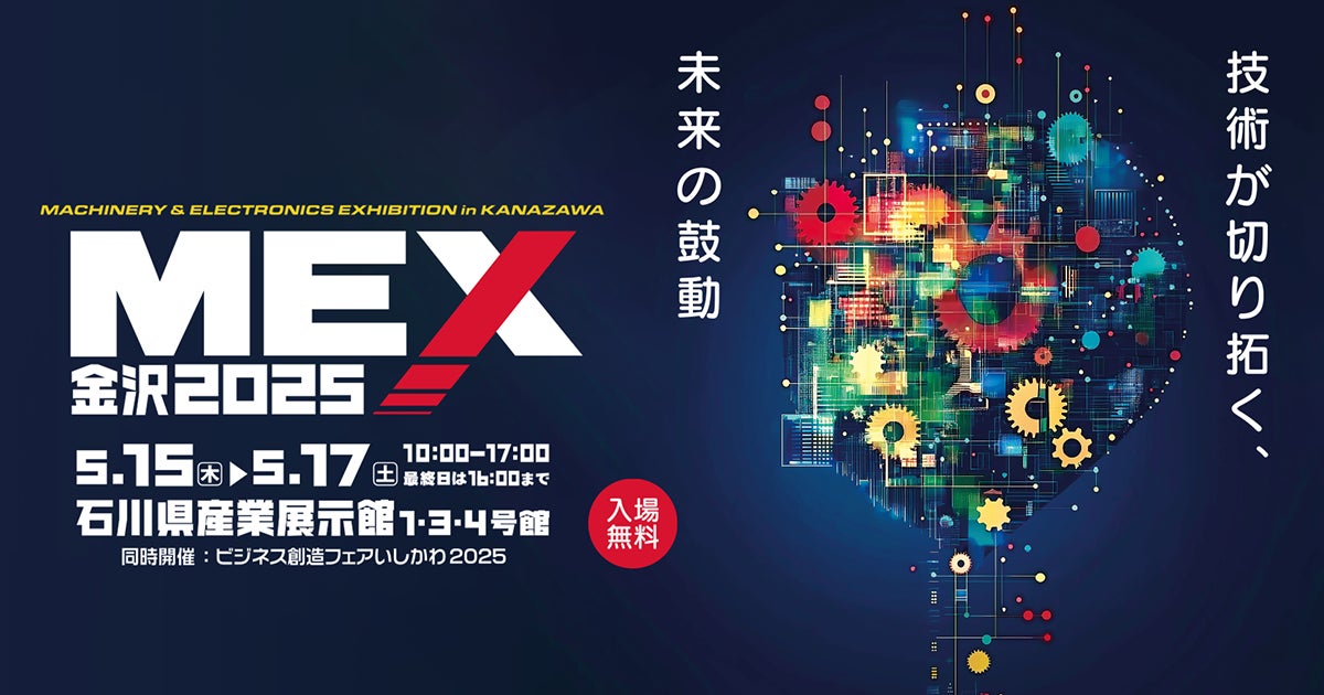 MEX金沢2025(第61回機械工業見本市金沢)は、「技術が切り拓く、未来の鼓動」をテーマに、国内外の金属工作・加工機械および関連機器、電機・電子関連機器などの流通促進と技術交流を図り、産業および貿易の振興・発展に寄与することを目的とした展示会です。