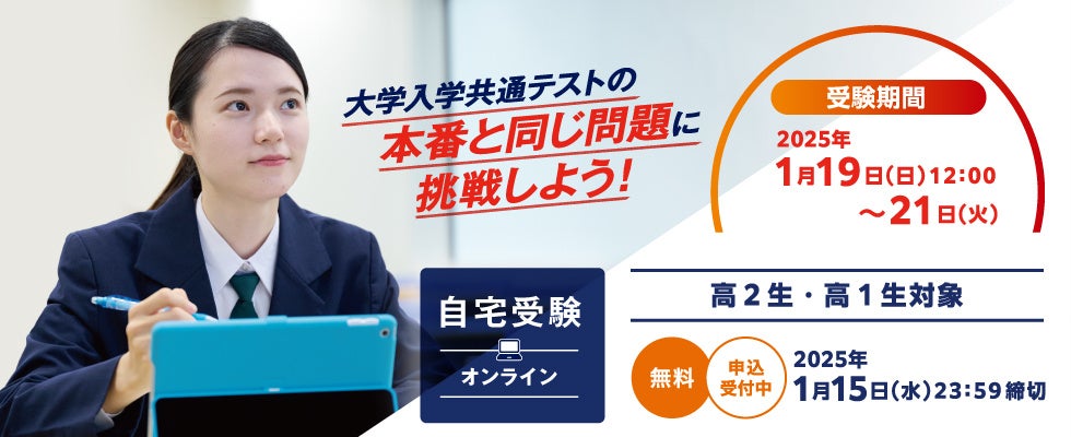 つきましては、全国の高1・2生が共通テストへ向けて一歩を踏み出す機会として、ぜひ貴媒体で広くご紹介いただきますようお願いいたします。