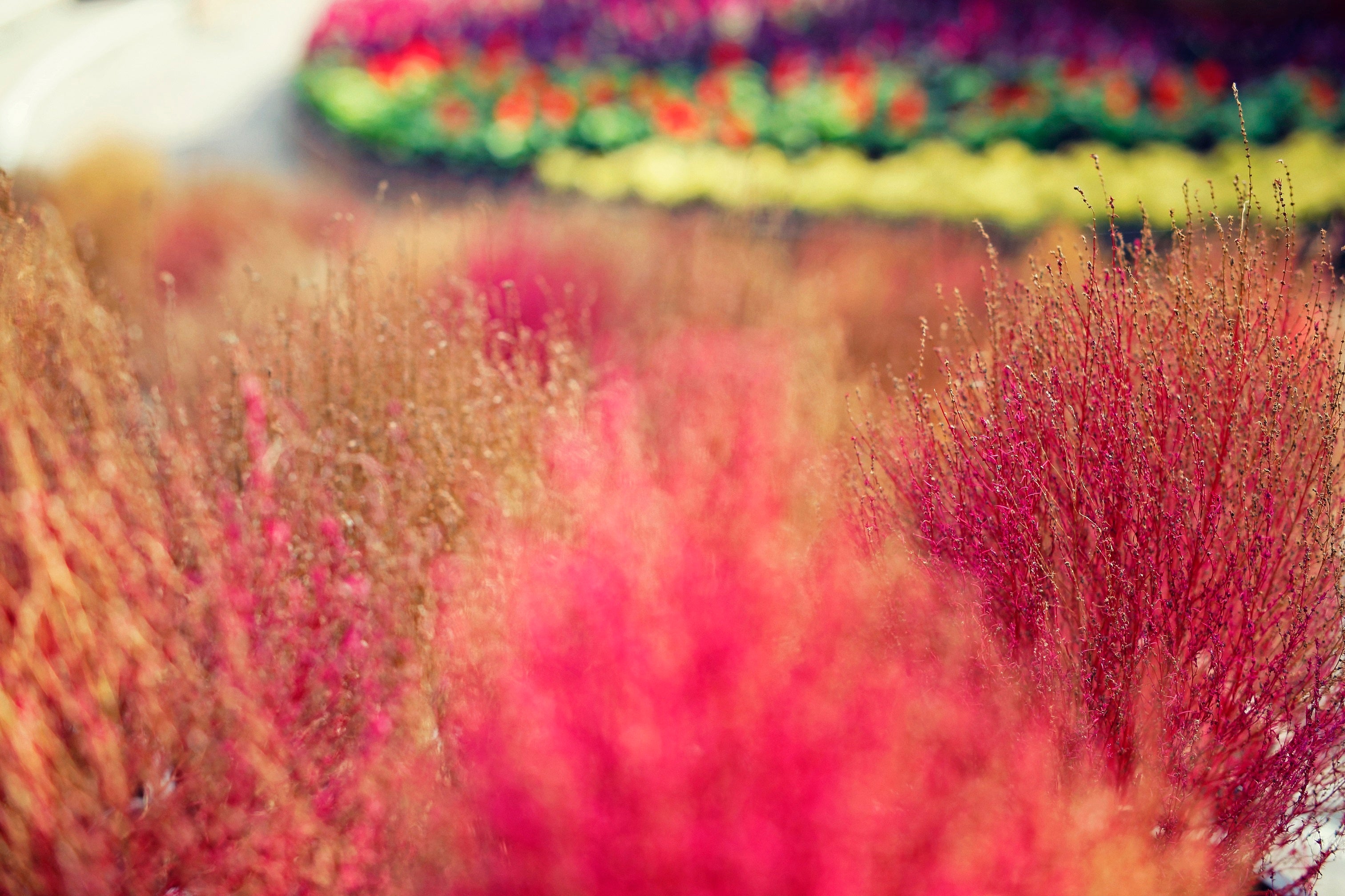 神戸布引ハーブ園のコキアは、ハーブや花々、神戸の景色と同時に様々なロケーションで楽しむことができます。秋のカラフルな色彩の中、もこもことしたコキアがアクセントになっています。青々としたコキアも可愛らしいですが、赤く染まったコキアは、秋の風物詩となっています。