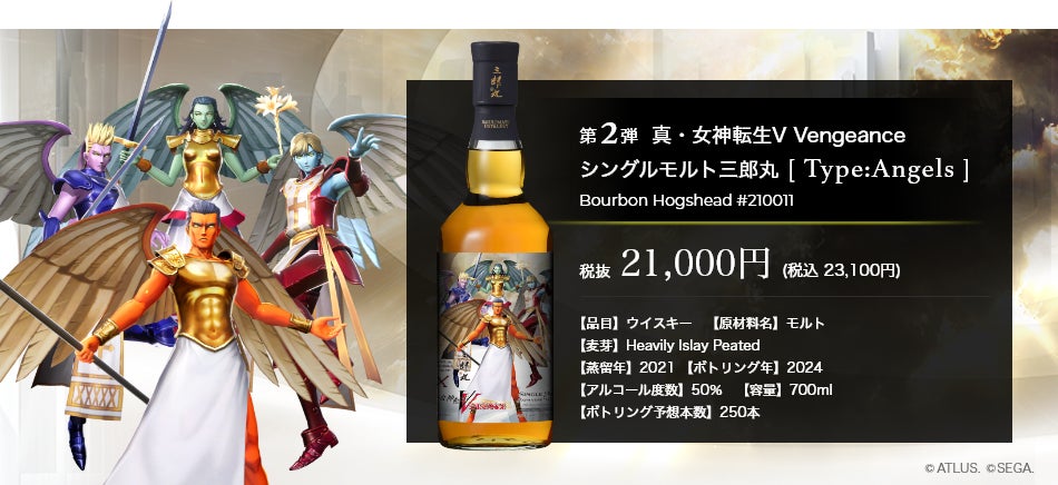 2024年6月の『真・女神転生V Vengeance × 三郎丸 ブレンデッドウイスキー』に続く、リリース第二弾から第四弾にかけて、3種類のシングルモルトウイスキーを特設ページより抽選販売いたします。