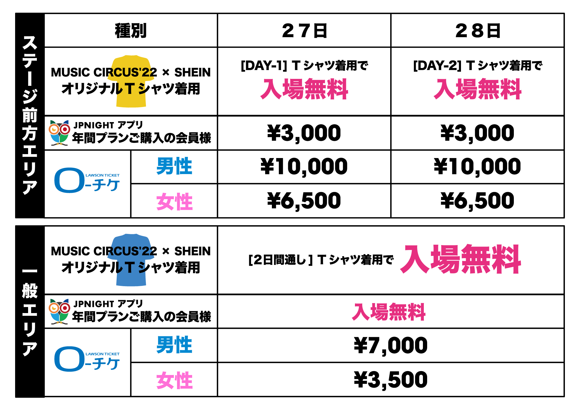 ※一般エリアは2日間通しチケットのみの販売となります。