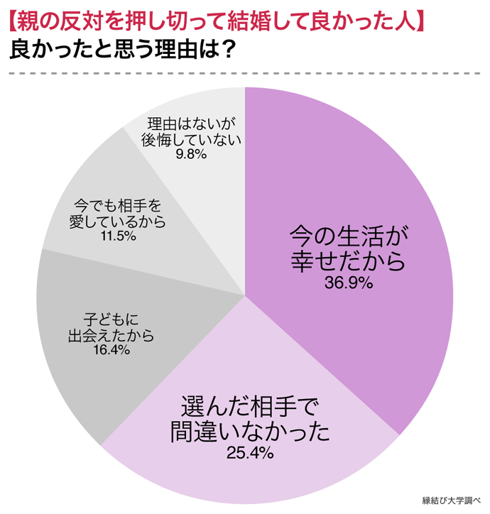 - 親の反対を押し切ってまで結婚して良かった理由は「今の生活が幸せだから」