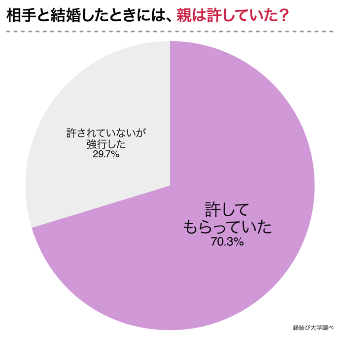 今回の調査では、結婚するときには親に結婚を「許してもらっていた」という人が70.3%と多数を占めました。