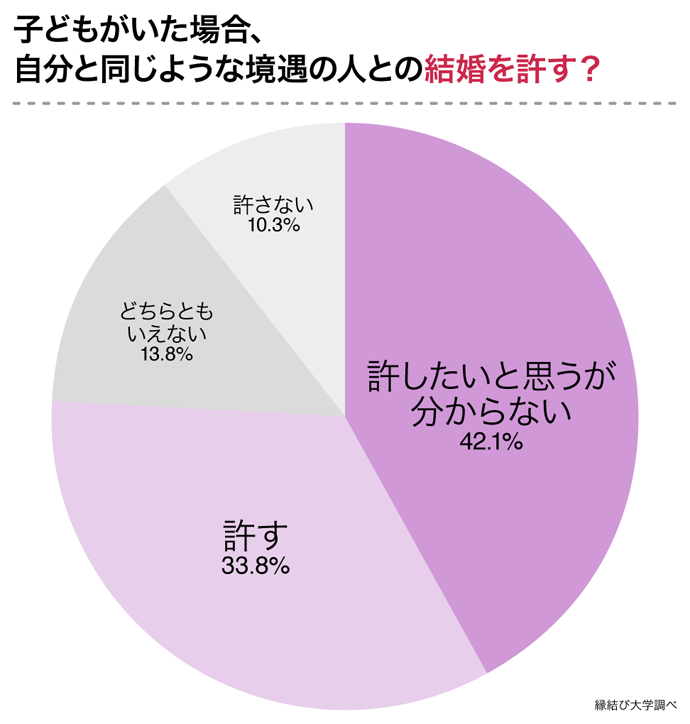 その結果、「同じ境遇の相手との結婚を許す」と答えた人は33.8%と、約3人に1人という回答に留まりました。