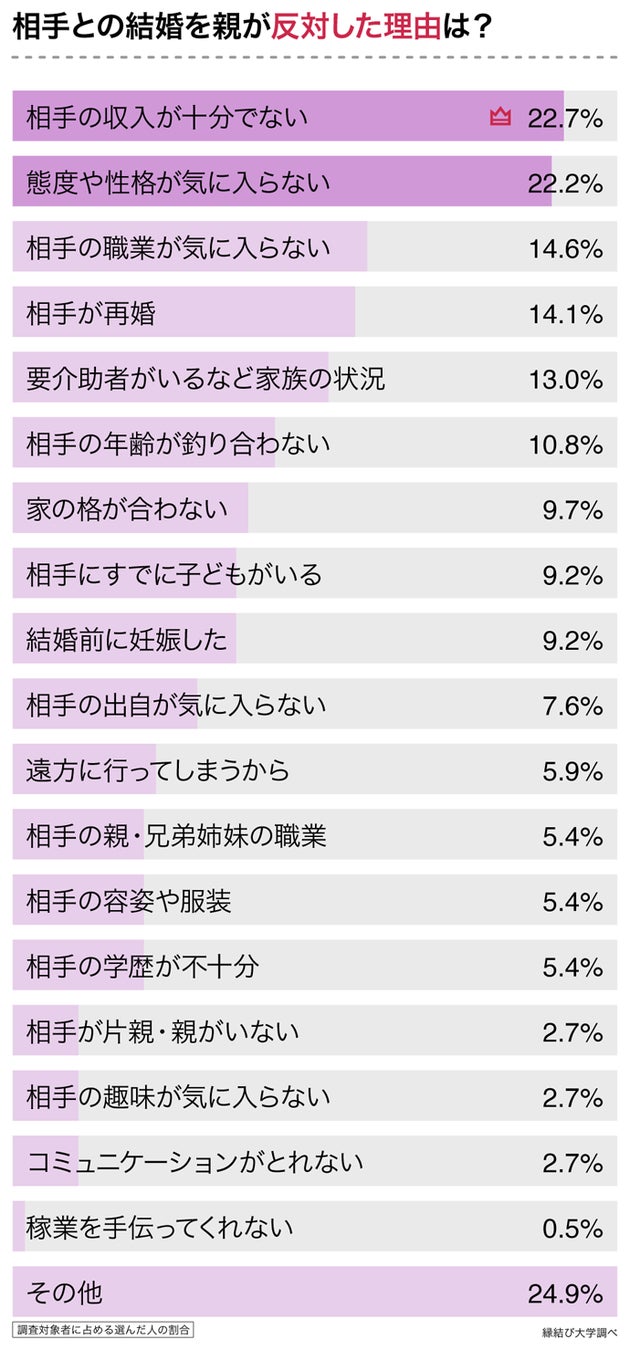 - 親が結婚に反対した理由1位は「相手の収入が十分でない」から