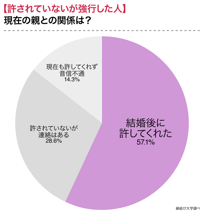 - 結婚を強行した人も、結婚後は57.1%が「親が許してくれた」と回答