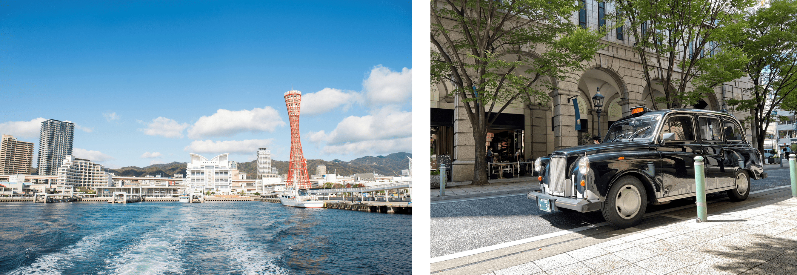 神戸が開港以来どのように文化を取り入れ、文明開化をしたのか、異国情緒あふれる街へと発展したストーリーに触れながら、当時の外国人のように神戸の街を巡ります。移動はロンドンタクシーで神戸の名所を巡りながら。
