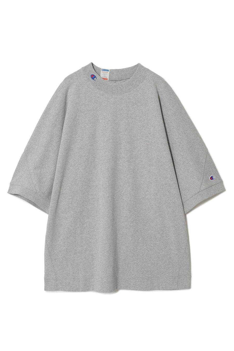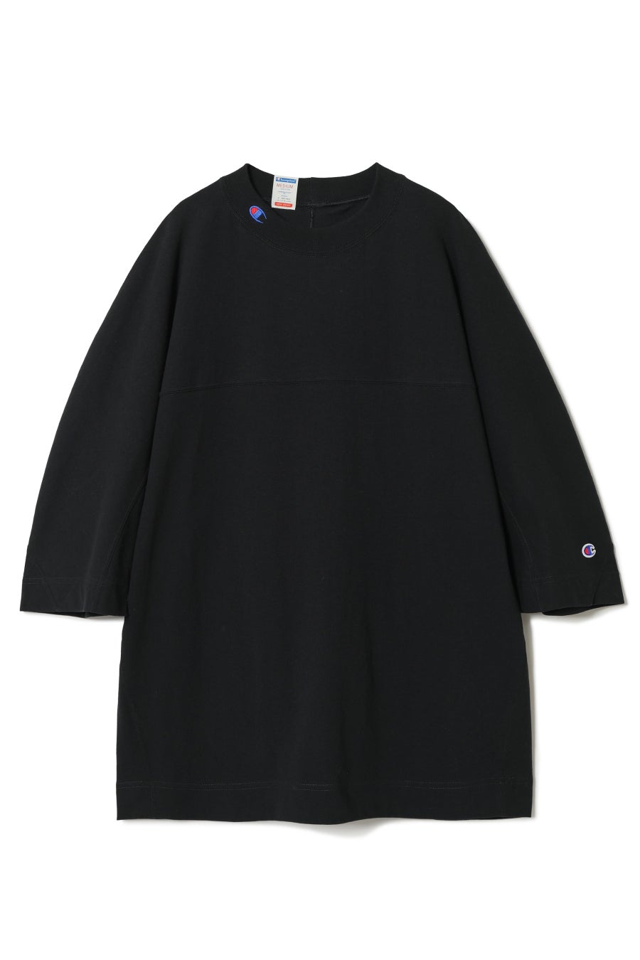 ヴィンテージファンの間では通称“バータグ”と呼ばれるタグが付いた1970年代のChampionのプロダクトから、天竺素材を用いたアスレチックウエアにフォーカスしたデザイン。肌触りの良いコットン100%の天竺素材を身体に沿った立体裁断で組み上げ、1970年代のフットボールシャツをベースに、前身頃からスリーブの上部、後身頃にかけて一枚の生地で製作したハーフスリーブTシャツです。内側に入り込むように丸みのあるフォルムの七分袖のゆったりとしたワイドシルエットで、袖リブ仕様。裾の折り返しを太めに設定することで上品な印象に仕上げています。ベージュは今シーズンのコラボレーションのために製作したオリジナルカラー。