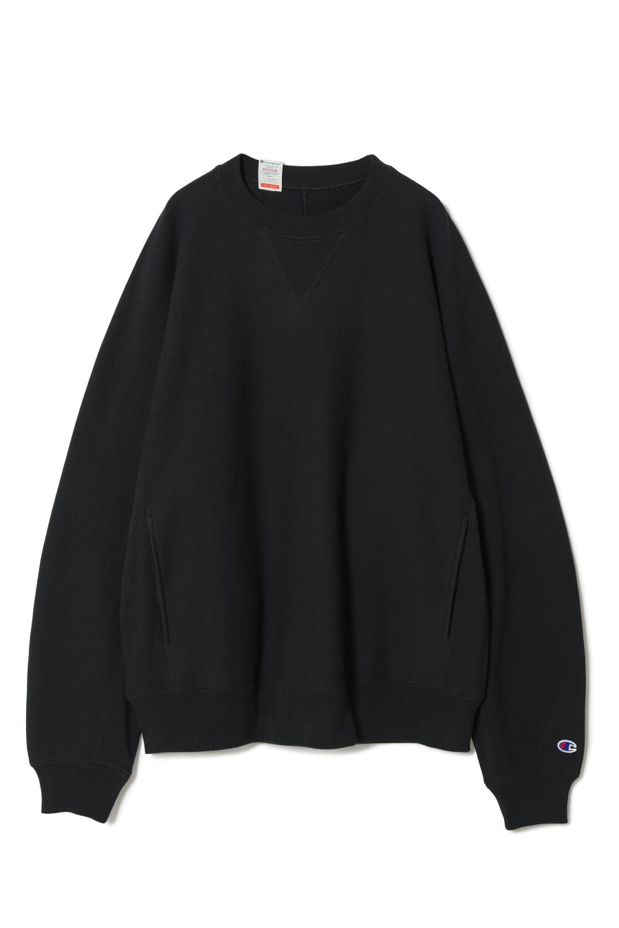 Champion を代表する製法の「REVERSE WEAVE®」を再構築し、着込むほどに独特の風合いや味わいが出る11.5oz(11.5オンス)の裏起毛素材を身体に沿った立体裁断で組み上げ、前身頃からスリーブの上部、後身頃にかけて一枚の生地で製作したクルーネックスウェットシャツです。