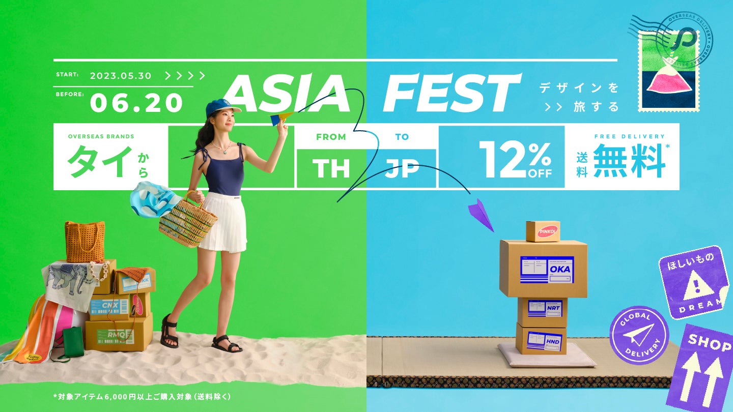 Pinkoiは、台湾・香港・中国・タイ・韓国・日本などのアジアを中心とした各国のデザイナーからデザインプロダクトを直接購入できる越境ECです。デザイナーには海外進出の機会を、お客様にはデザインやクリエイティブを通じた海外との出会いを提供しています。5月30日(火)〜6月20日(火)、まだまだ海外旅行欲が満たされていない方たちに向けて特大キャンペーン「Pinkoi アジアフェス 2023」を実施します。