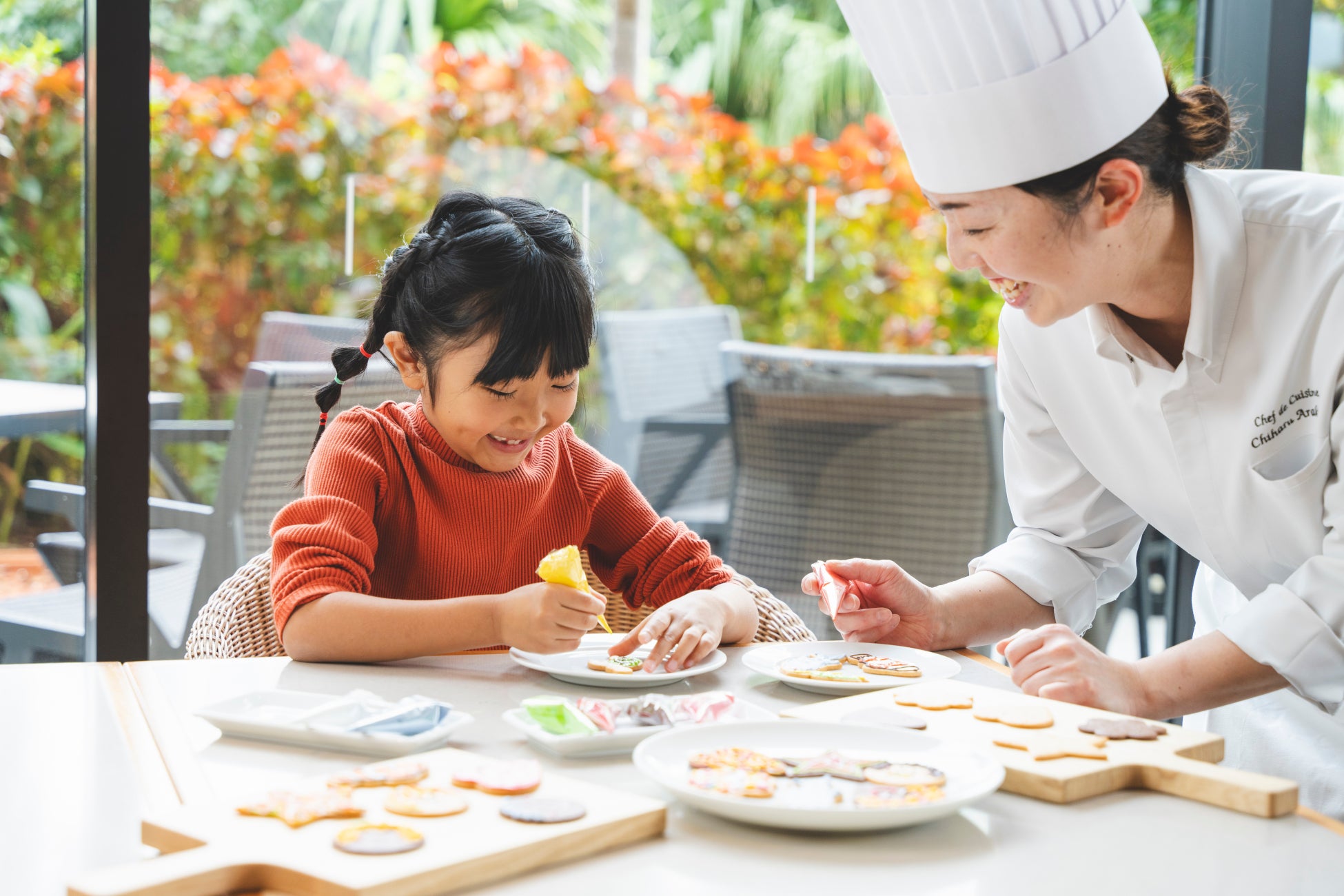 オールデイダイニング「セラーレ」の「週末ランチビュッフェ」では、この時期限定で旬のいちご食べ比べをご用意いたします。華やかないちごのスイーツや、彩り豊かなイタリアンメニューをお好きなだけお楽しみいただけます。ペストリーシェフと一緒にクッキーのデコレーションを体験できるキッズワークショップも毎回好評いただいており、ご家族での夢中になるひとときをお過ごしください。