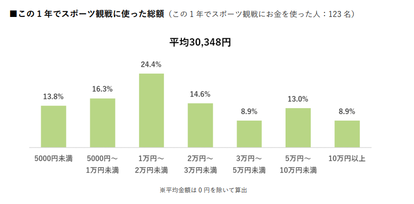 ⇒チケットや交通費を含めた1年間の観戦費用総額は平均30,348円。