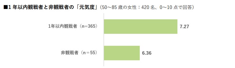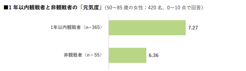 スポーツ観戦者の元気度は、非観戦者より高い傾向に。