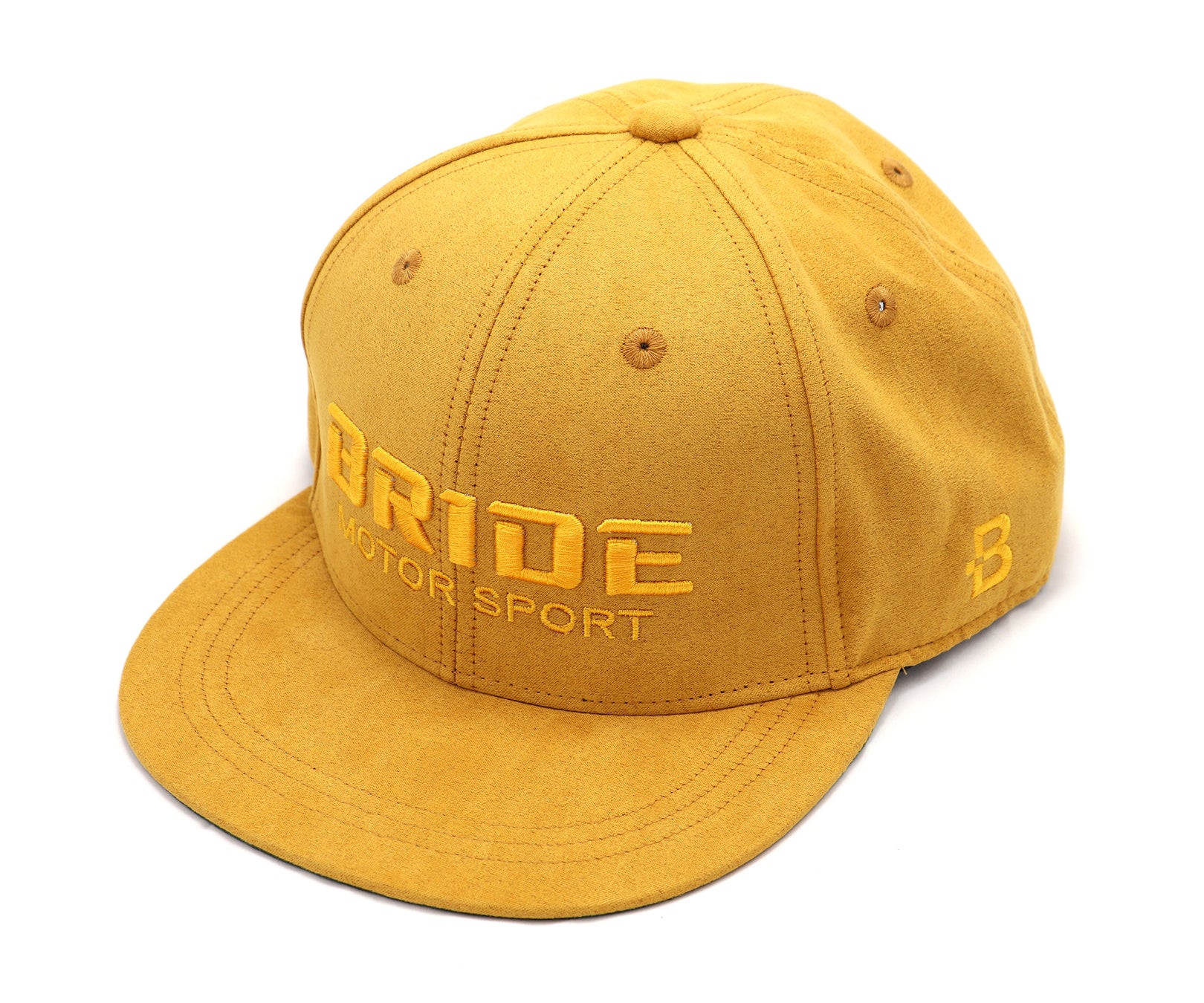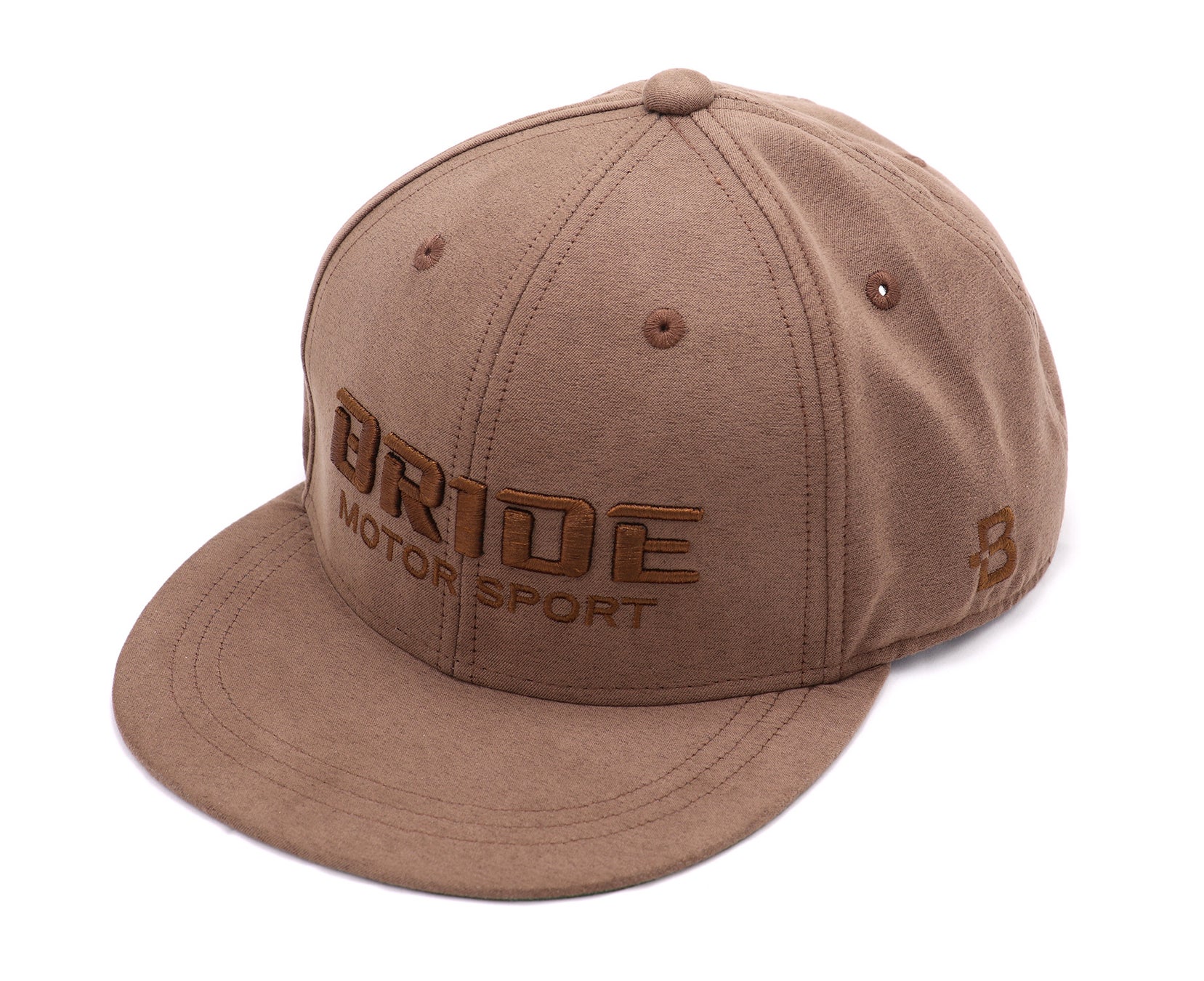 本製品は、フラットバイザー型のオリジナルキャップです。前面には立体刺繍で【BRIDE MOTOR SPORT】のロゴを配置し、バイザー裏面には、BRIDEのスポーツシートをモチーフにしたキャラクターの【ホールディングモンスター(愛称:バケモン)】がプリントされています。高級感があり、肌触りの良いスウェード調の生地で、オシャレなデザインのキャップです。