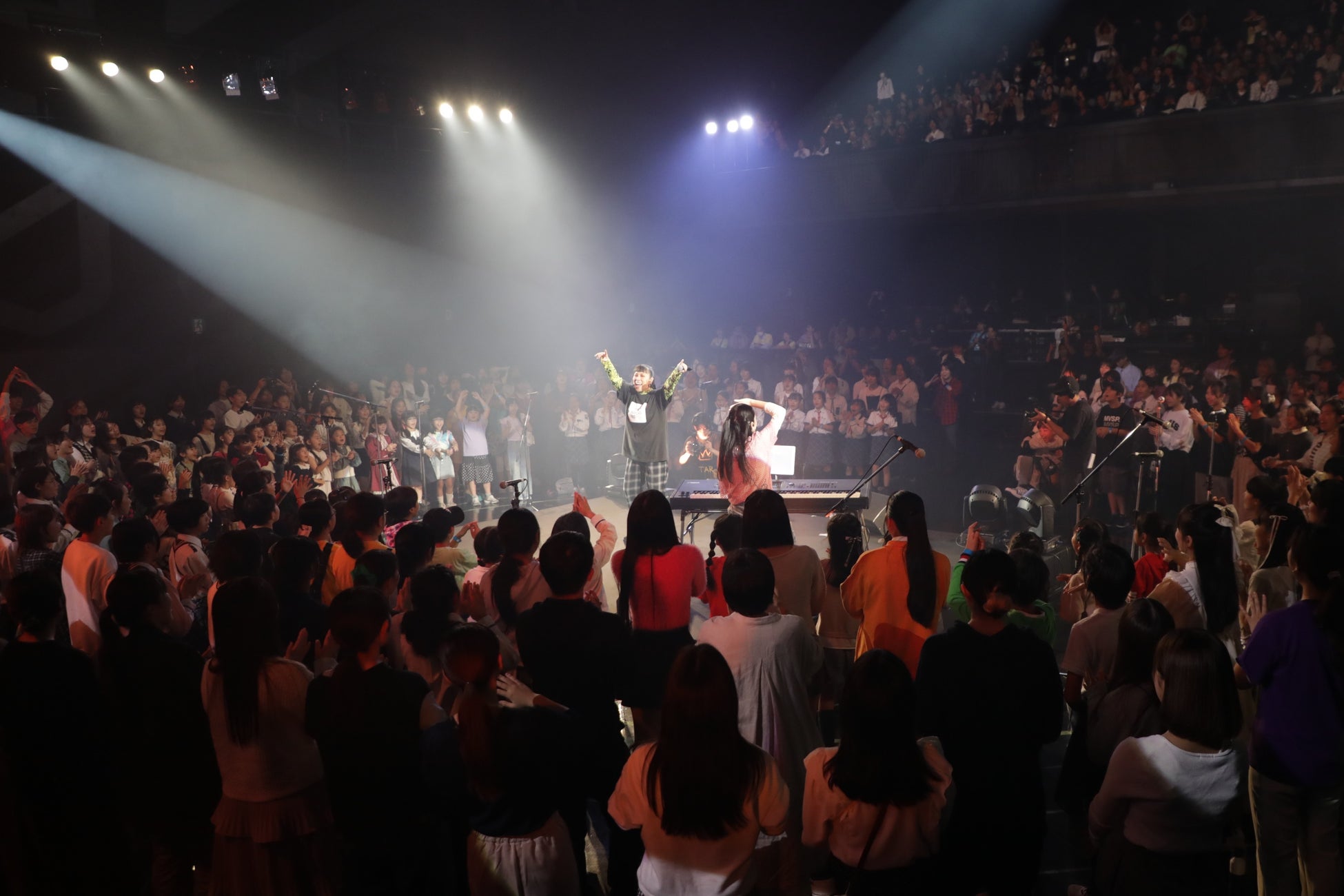 同フェスは、地域で行なうボランティアをはじめ、環境活動や国際協力など、SDGs達成につながる社会貢献活動をした25歳以下の子ども・若者だけが参加できる無料ライブイベントで、2021年、2022年のオンライン開催を経て、2023年には初めて会場(Tokyo Dome City Hall)で開催。4回目となる今年は「Take Action for Peace~平和をつくる私のアクション~」をテーマに、小学生から社会人まで25歳以下のチェンジメーカー約400人が一堂に集まり、ゲストらとともに多彩なステージプログラムを展開。メインプログラムであるAIの楽曲「Lasting Peace Song」を歌う特別企画では、AIのソウルフルな歌声に響く子どもたちの美しいハーモニーに、平和を願う気持ちとよりよい未来への熱い思いがあふれ、会場を包み込みました。