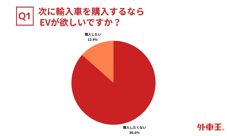 輸入車オーナーに、次に輸入車を購入するならEVが欲しいかどうかを尋ねたところ、86.6%が「購入したくない」と回答しました。輸入車EVの購入意向は、全体のわずか13.4%にとどまることがわかりました。