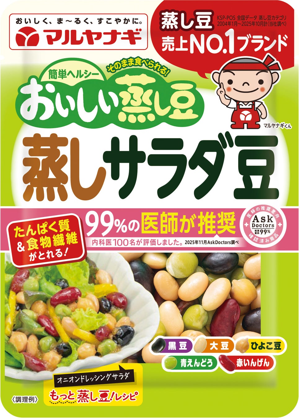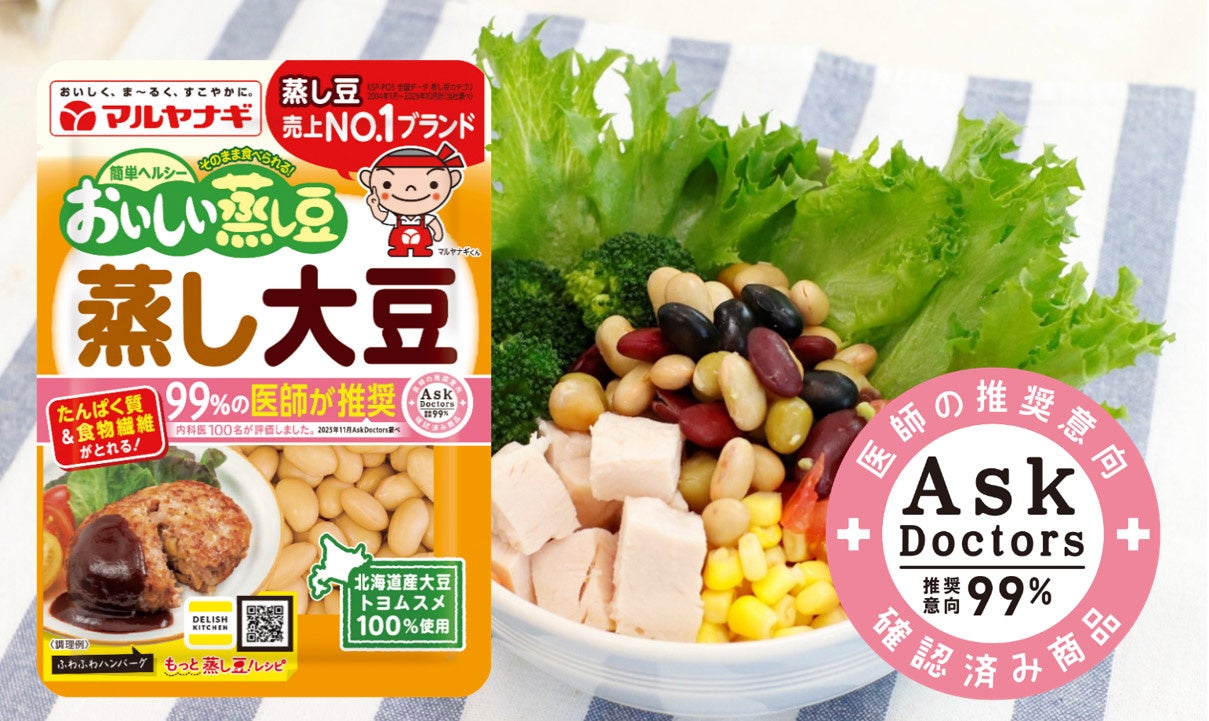 蒸し豆・煮豆・佃煮メーカーの株式会社マルヤナギ小倉屋(神戸市東灘区:代表取締役社長 柳本勇治)は、「おいしい蒸し豆」シリーズ3品、「大容量蒸し豆」シリーズ2品、「おいしいもち麦シリーズ」3品、「マルヤナギwith日本の農家さん」シリーズ1品(計9品)で、エムスリー株式会社(東京都港区:代表取締役 谷村格)が提供する「AskDoctors評価サービス」による評価の結果、100名中99%の医師の推奨意向を得て 「AskDoctors医師の確認済み商品」マークを取得しました。推奨意向99%マーク付きのパッケージは2026年3月下旬より順次、全国の小売店およびスーパーマーケットなどで販売いたします。
