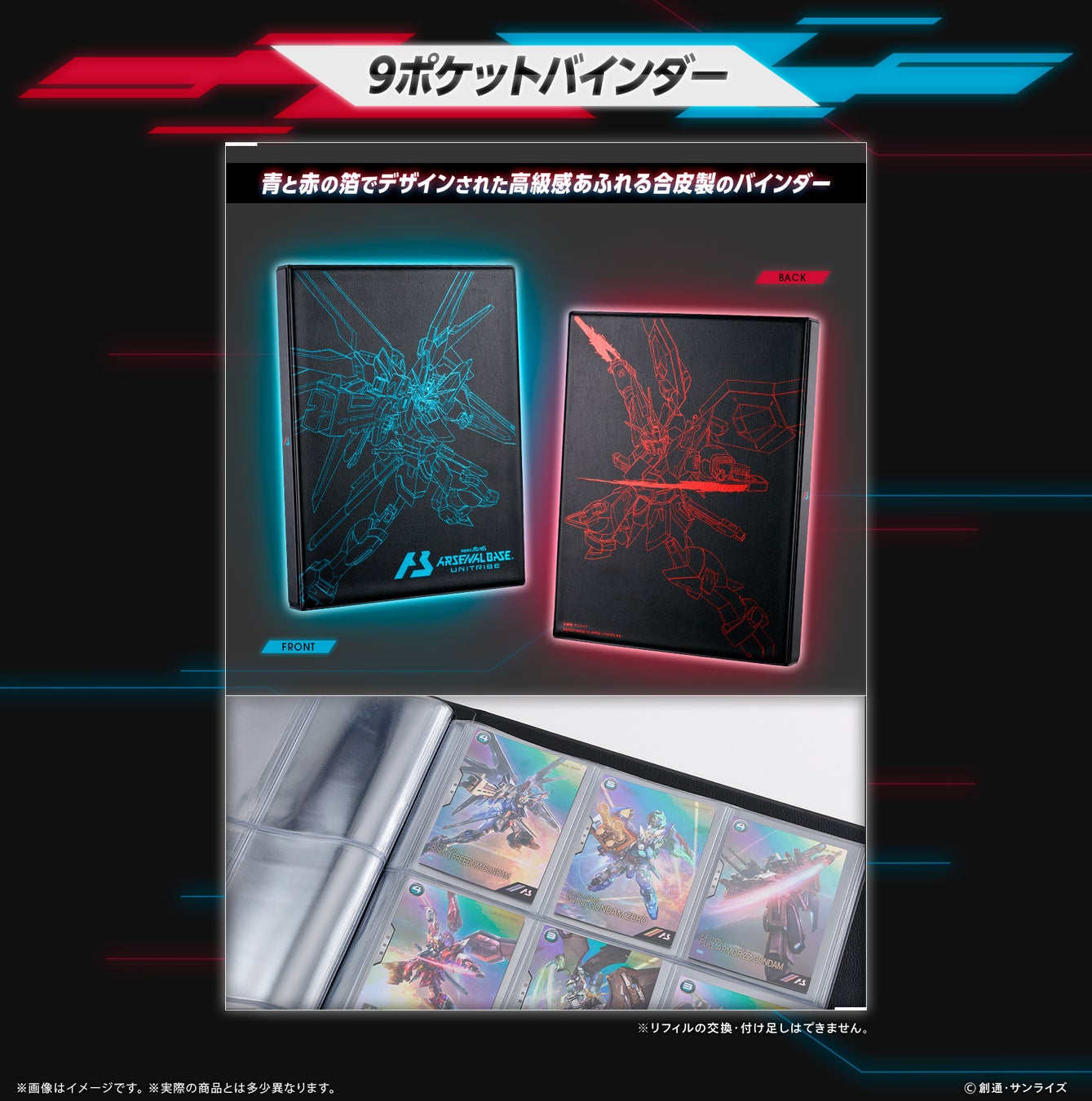 合皮製×青・赤2色箔デザインの9ポケットバインダーを始め、カードストレージボックスや完全新規パラメーターのMSカード6種を加えた豪華セットとなっております。是非、お買い求めください。