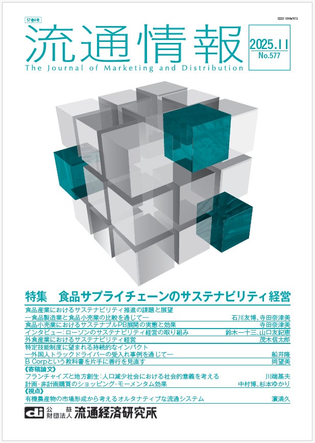 公益財団法人流通経済研究所(東京都千代田区、理事長:加藤弘貴)は、『流通情報』2025年11月号を発行しました。食品産業・小売業の「サステナビリティ経営」の実態を多角的に分析しています。