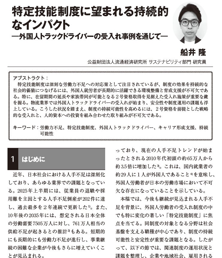 「特定技能制度に望まれる持続的なインパクト―外国人トラックドライバーの受入れ事例を通じて―」