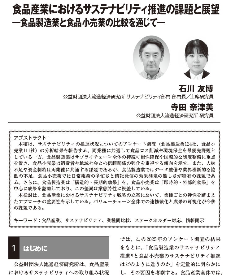 「食品産業におけるサステナビリティ推進の課題と展望―食品製造業と食品小売業の比較を通じて―」