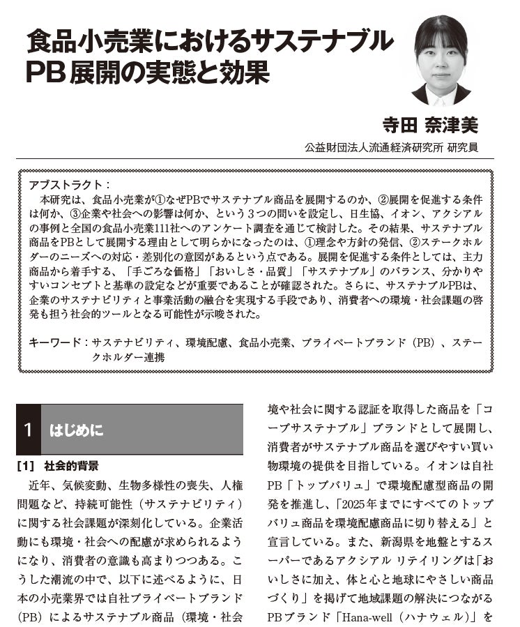 「食品小売業におけるサステナブルPB展開の実態と効果」