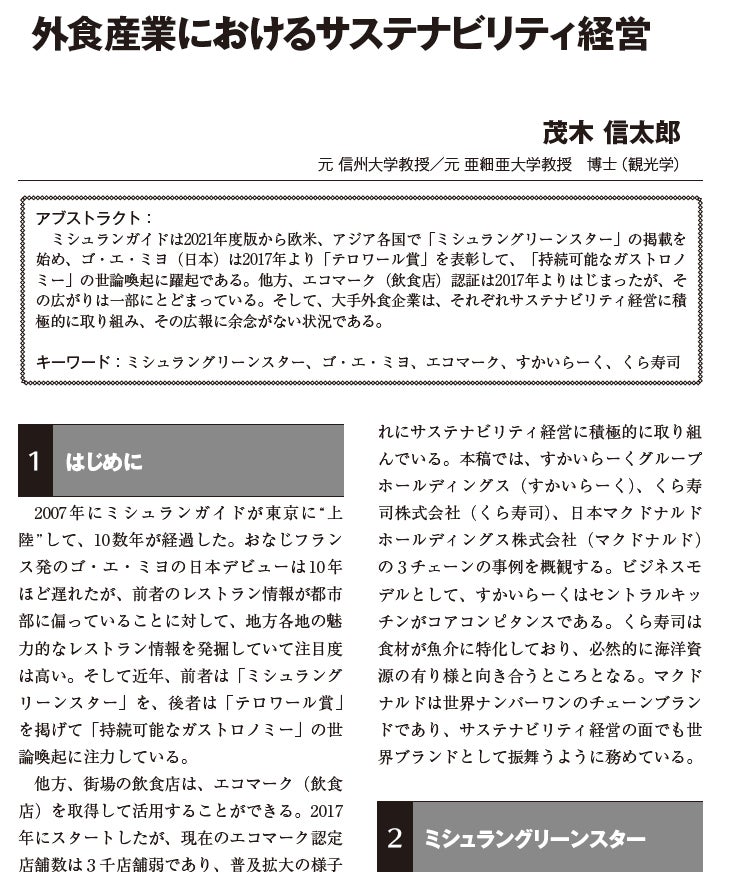 外食業界の「サステナビリティ経営」については、主要3社のケーススタディを通じて、「サステナビリティ経営」の実践と課題を分析。