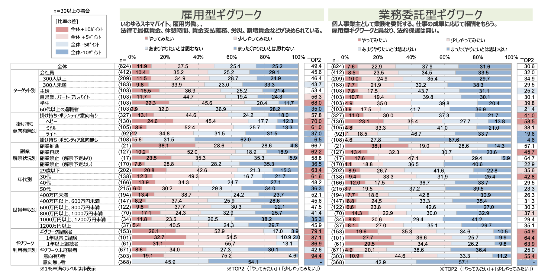 【ギグワーク・雇用形態別ギグワークについての調査パート】