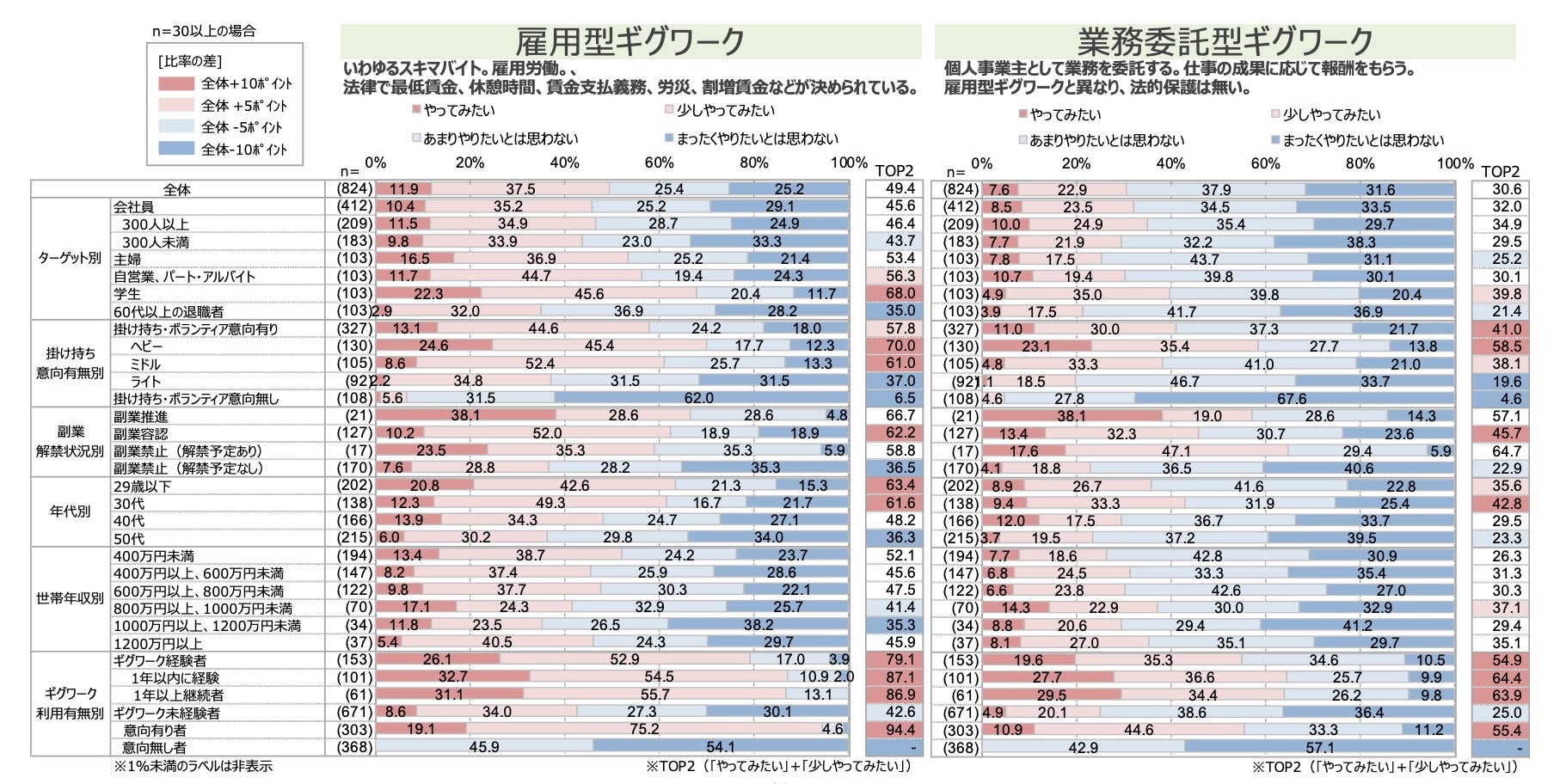 ・「雇用型ギグワーク」の就労意向は49%と、『業務委託型ギグワーク』の就労意向31%よりも高い結果に。