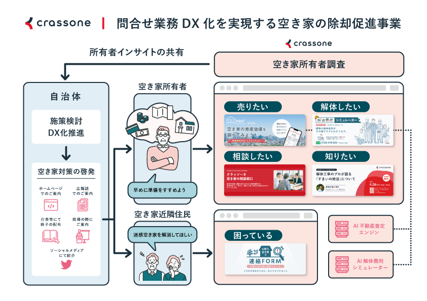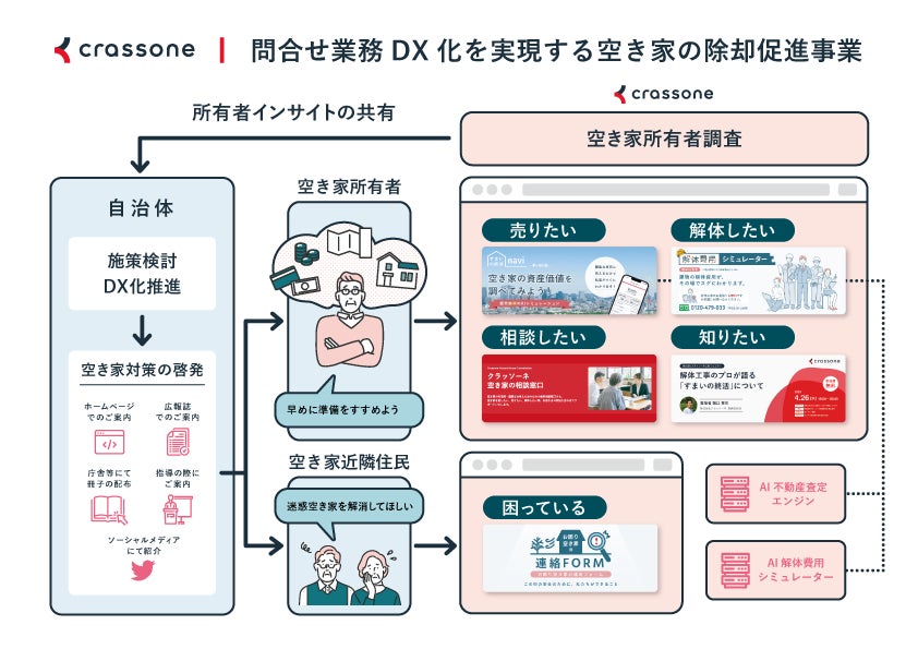 【3年連続、国土交通省「空き家対策モデル事業」の事業者にクラッソーネが採択】空き家相談における様々なニーズに応え、自治体の問い合わせ業務DX化を実現