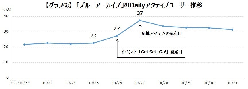 ■イベント開始翌日の“ヤケクソ補填”でユーザーが伸びた『ブルーアーカイブ』