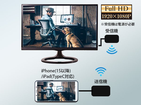 USB-TypeC to HDMIケーブルをワイヤレス化!USB-TypeCからワイヤレスで映像・音声を送信し、HDMI入力でモニターに表示する「センナックス-USB-TypeC出力用」本日発売