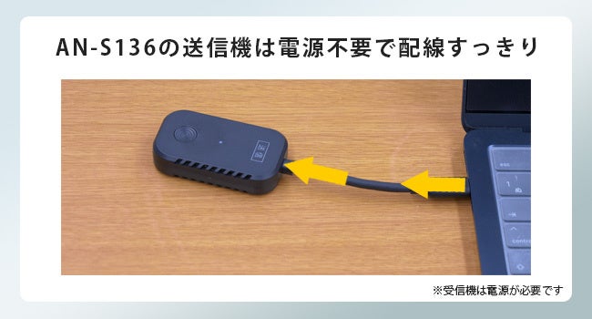 本製品は受信機と送信機をそれぞれ差し込むだけでケーブルがワイヤレス化でき、配線周りをすっきりさせることができます。難しい設定は必要ありません。(※受信機は電源が必要です)