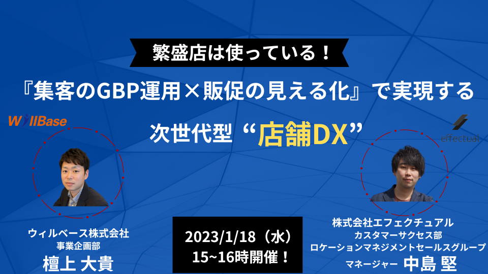 繁盛店は使っている! 『集客のGBP運用×販促の見える化』で実現する次世代型“店舗DX” -2023/1/18開催