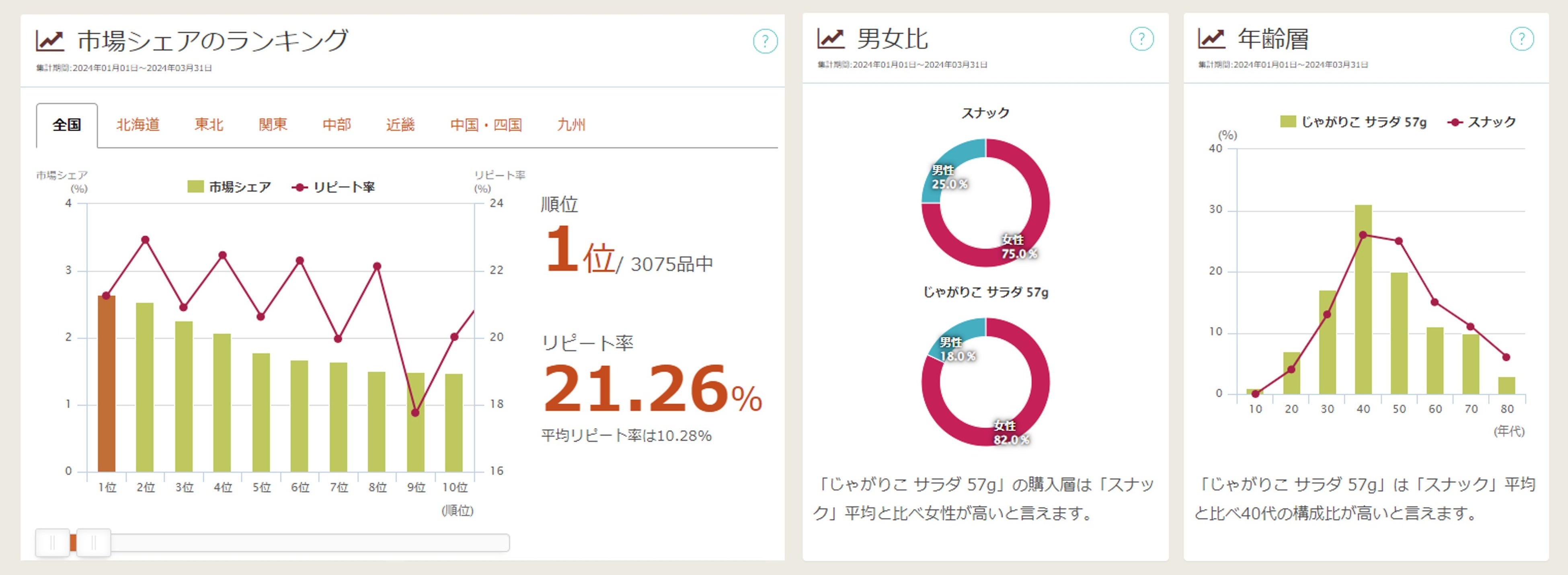 ※2:ID-POSデータとは顧客ID付き購買データ。購入者の性別、年代、リピーターの割合など顧客軸で分析することができる。データは統計化した調査パネルによるもので、店舗・個人を特定する情報は一切含まれない