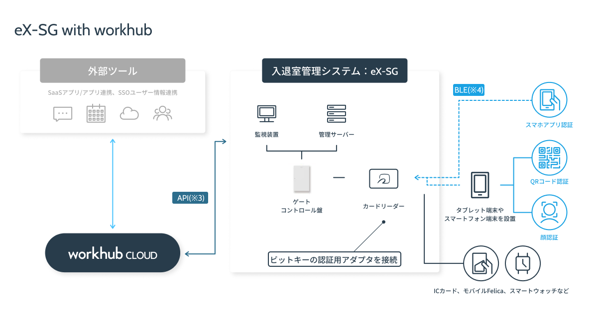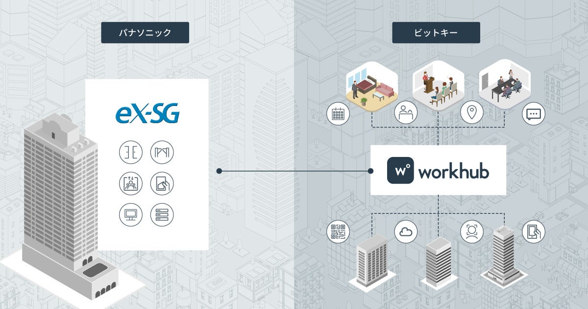 株式会社ビットキー(以下、ビットキー)と、パナソニック株式会社エレクトリックワークス社(以下、パナソニック)は、ビットキーがワークプレイス向けに展開するコネクトプラットフォーム「workhub」と、パナソニックが提供する統合型セキュリティシステム「eX-SG」との連携による統合ビル入退室サービス「eX-SG with workhub(以下、本サービス)」を共同開発し、2022年秋よりサービスおよびシステムの受注に向けた提案を開始することをお知らせします。今後、本サービスはパナソニックが提供する統合ビル入退室サービスとして標準提供いたします。