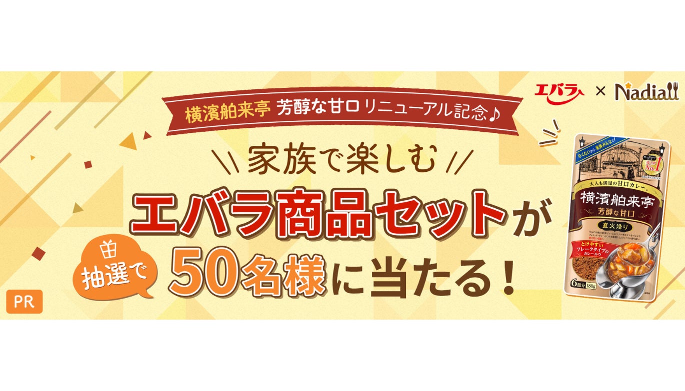 Nadia株式会社(東京都港区/代表取締役社長 葛城嘉紀 以下「Nadia」)とエバラ食品工業株式会社(神奈川県横浜市/代表取締役社長 森村 剛士 以下「エバラ食品」)がタイアップし、特別企画ページ【家族で楽しむエバラ商品セットが抽選で50名様に当たる!プレゼントキャンペーン】を公開いたしました。