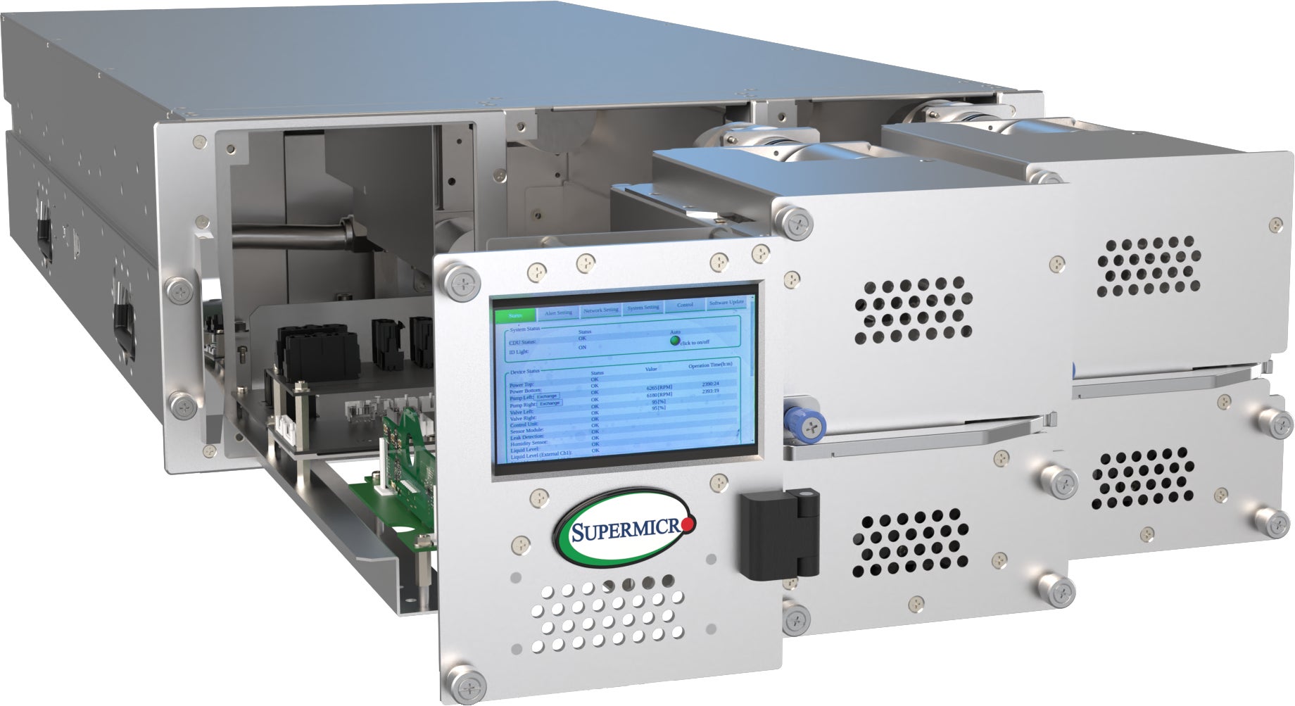 菱洋エレクトロは、Supermicro正規一次代理店として、NVIDIA H100を8基搭載した液冷対応GPUサーバー(AS-4125GS-TNHR2-LCC)、専用ラック、CDU*[2]、そして日本初となる液冷クーリングタワー(LCS-SCLT-010C1001)などを液冷サーバーシステムとしてワンストップで提供しました。日本では液冷方式への慎重な姿勢があることから、Supermicroの液冷クーリングタワーはこの度のゲットワークスによる採用が日本で初めての導入となりました。