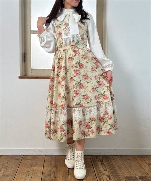 花モチーフのレースやボタンがほどよいアクセントに♪