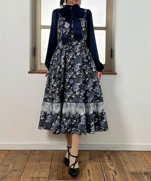 アーカイブからアレンジした花柄は、華やかさはそのままにアンティークなカラー展開に落とし込みました。