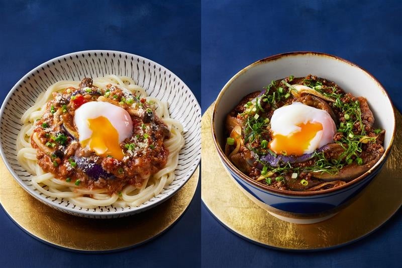 当店で人気を博した「タコライス」のソースをアップデートし、旬の秋茄子と合わせて“うどんスタイル”で提供します。惜しまれつつ販売終了したタコライスですが、多くのお客様から再販のご要望をいただき、この度“新しいカタチ”として期間限定で復活いたしました。