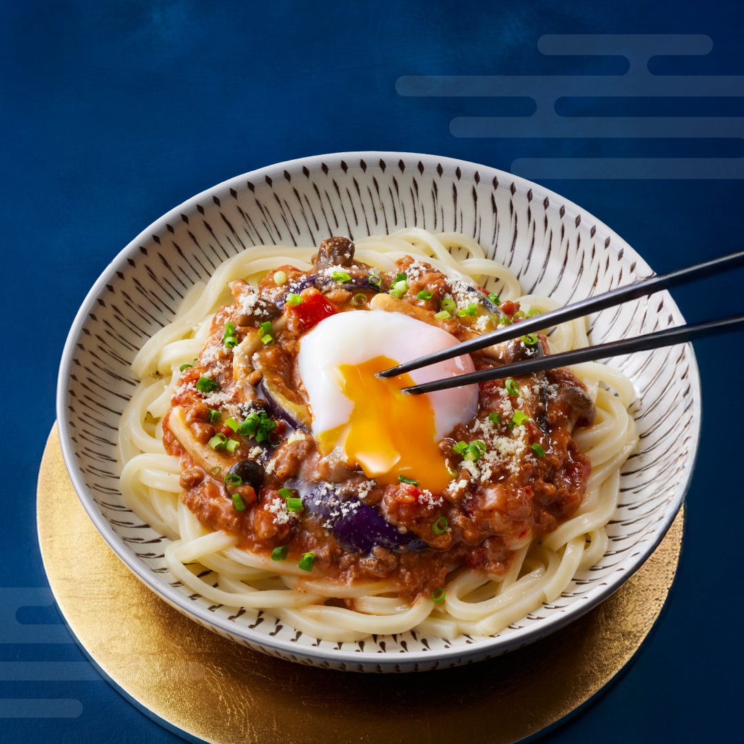・『秋茄子の自家製ボロネーゼうどん』 ¥1,520(税込)