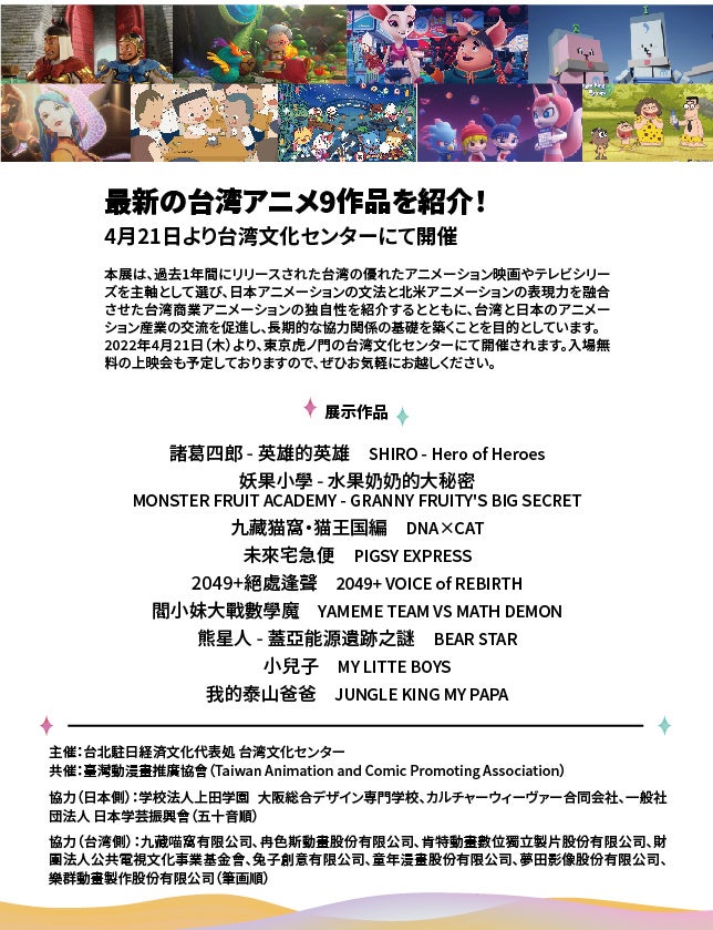 「タイワニーズ・アニメーション 〜最新台湾アニメ展示会〜」4月21日より台湾文化センターにて開催!最新の台湾アニメ9作品を紹介