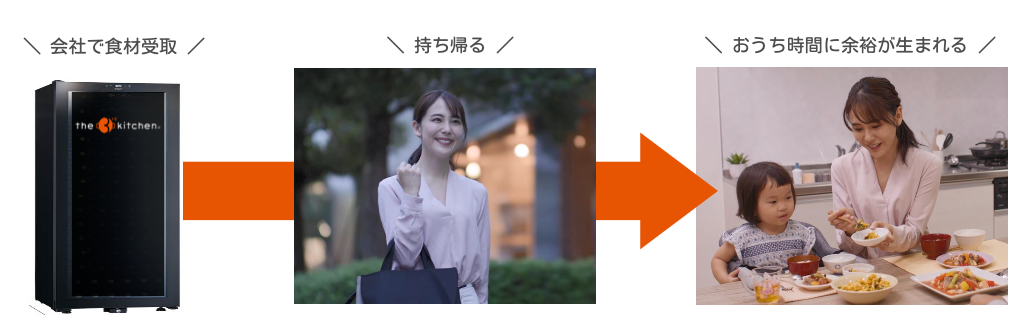 「the 3rd kitchen®︎」は、いつもの職場でご家族さまも安心して召し上がれる夕飯ミールキットが受け取れるサービスです。