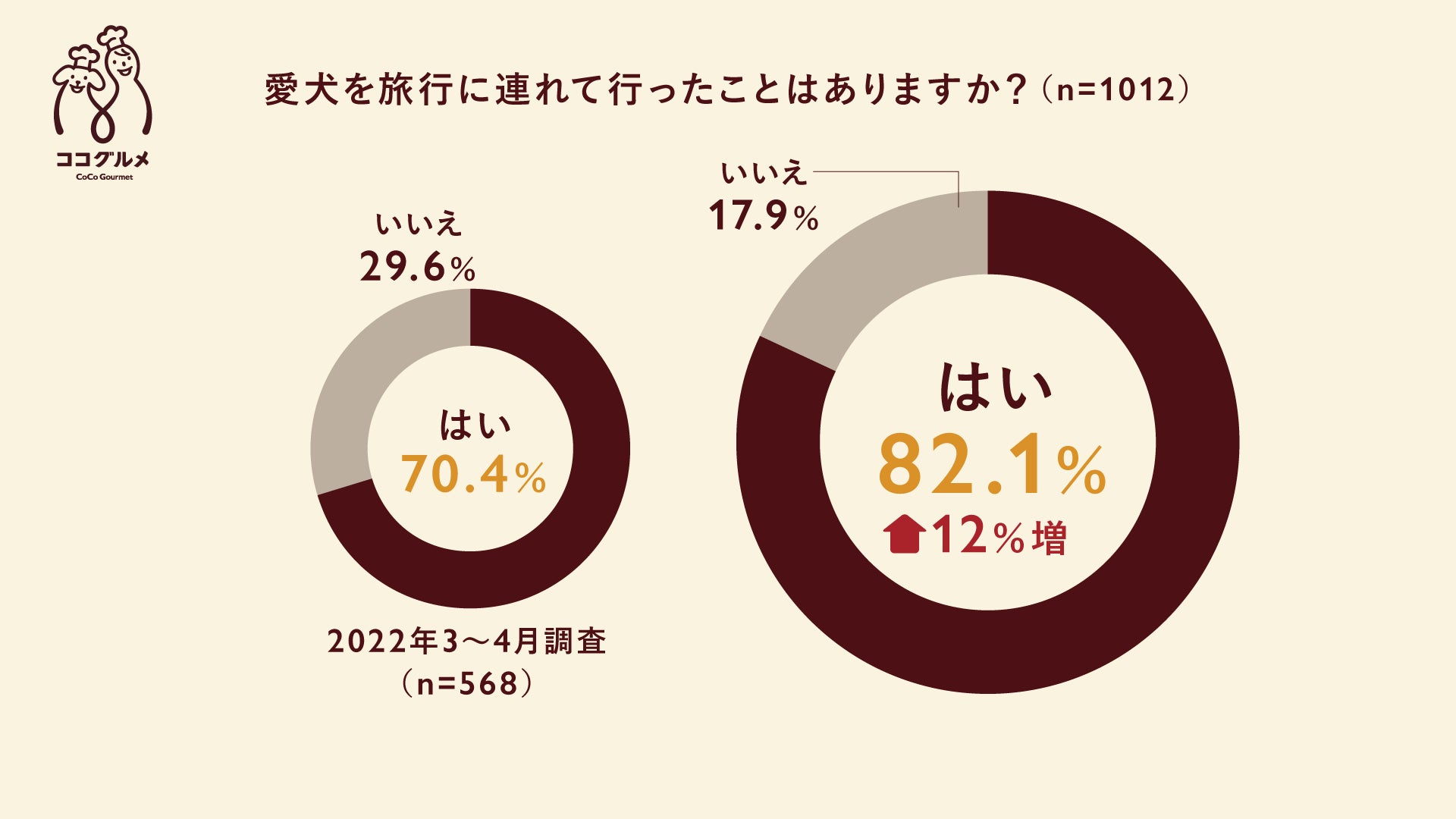 愛犬と旅行したことのある飼い主は70%から82%に増加