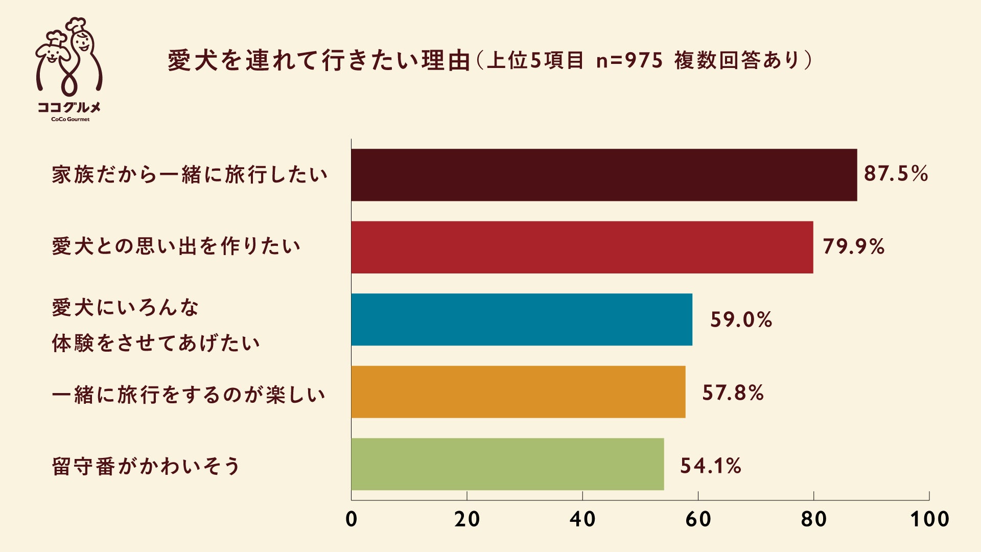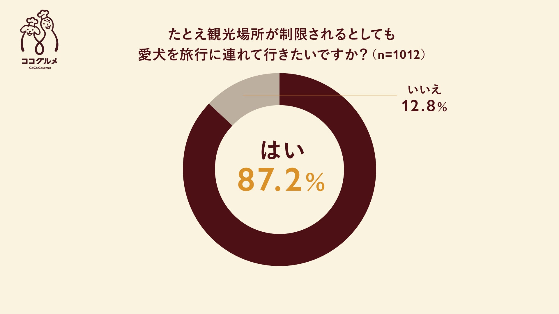 会員愛犬数25万頭超(※1)のフレッシュペットフード(※2)「CoCo Gourmet(以下:ココグルメ)」を開発・販売するスタートアップ、株式会社バイオフィリア(本社:東京都新宿区、代表:岩橋洸太、以下:当社)は、11月1日の「いぬの日」を前に、昨今盛り上がりをみせる「ペットツーリズム」に関する実態調査を全国の犬と暮らす飼い主さま1,012名を対象に行いました。(調査期間:2024年10月24日(木)〜28日(月))